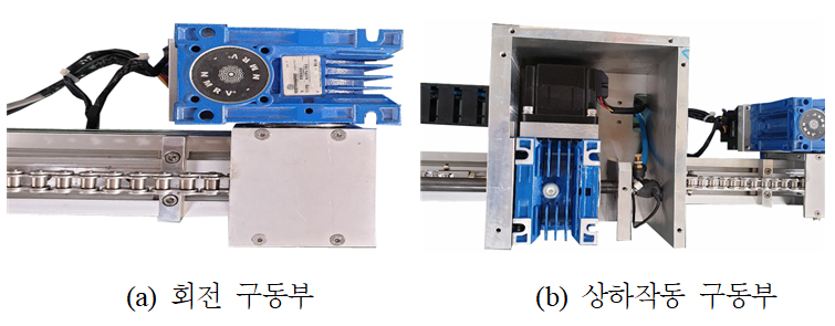드릴장치 구동부는 그림 3과 같이 BLDC모터 7690S(정격전압 DC 24V, 출력 250W, 토크 1.04Nm, 회전수 2300±10% rpm, 무게 2kg)2개로 상하작동