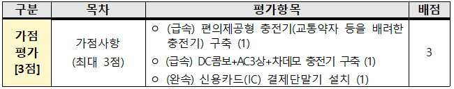 현장 평가표는 전기차 충전소 인프라를 설치하는 조건, 환경에 따라 일부를 수정하여 적용할 수 있다.