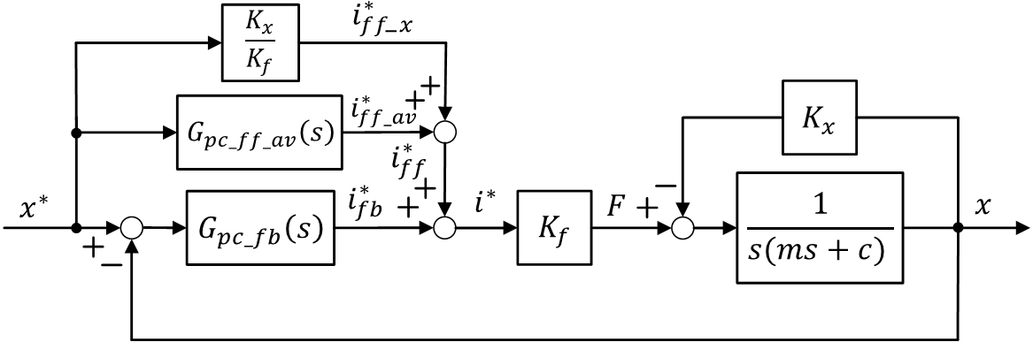 여기서 $G_{pc_{-}fb}(s)$는 피드백 위치 제어기, $G_{pc_{-}ff}(s)$는 전향 보상 위치 제어기, $G_{cc}(s)$는 전류