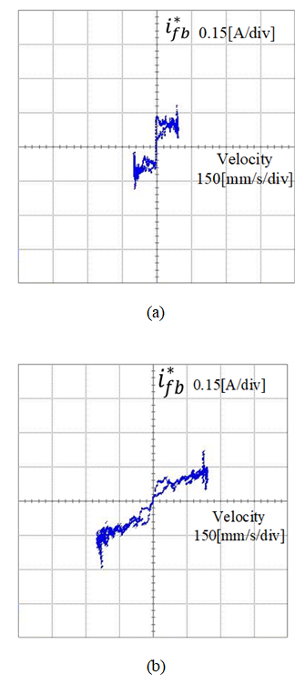 식 (19)에서의 마찰력 전향 보상 성분은 지령 속도 $v^{*}$에 특정 상수 값을 가지는 $c /K_{f}$를 곱한 형태이다. 하지만, 실제 VCM 구동