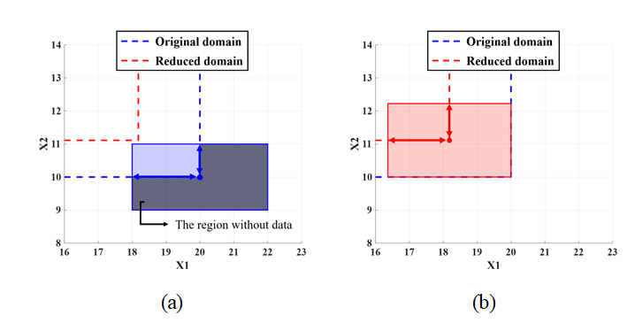 ๊ฐ๊ฑด์ฑ ํ๊ฐ๋ฅผ ์ํด์๋ ์ด์์ ์ธ ์ง์ ์์ ๊ณต์ฐจ ์ฐํฌ์ ๋ฐ๋ฅธ ์ฑ๋ฅ ๋ณํ์ ๋ถ์์ด ํ์ํ๋ค. ๊ทธ๋ฌ๋ ๊ณต์ฐจ๋ฅผ ๊ณ ๋ คํ ๊ตฌ์กฐ์  ์ค๊ณ ๋ณ์ ๋ณํ๊ฐ ๊ทธ๋ฆผ 2(a)์ ๊ฐ์ด ๋ฌธ์ ์์ญ ๊ฒฝ๊ณ ๋ฐ์ผ๋ก ํ์ฅ๋๋ ๊ฒฝ์ฐ, ํด๋น ๋ถ๋ถ์์๋ ์ด๊ธฐ ํด๋ฅผ ๋์ถํ์ง ์์๊ธฐ ๋๋ฌธ์, ํด๋น ๋ถ๋ถ์์์ ๋๋ฆฌ๋ชจ๋ธ์ ์์ธก ์ฑ๋ฅ์ด ๊ธ๊ฒฉํ ์ ํ๋