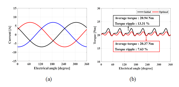 Fig. 9. Load condition analysis result of the optimal model (a) Input current (b)
