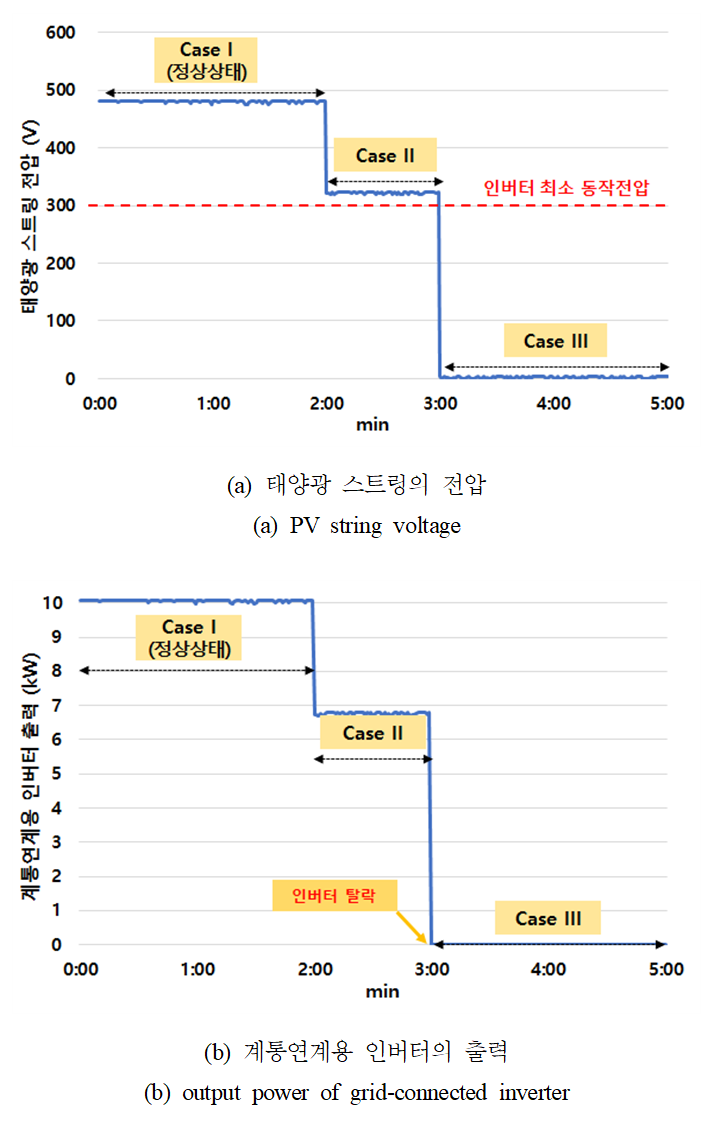 등을 선정하고, 태양광 스트링의 전압($V_{str}(t,\: s)$)과 모듈의 전압($V_{\bmod }(t,\: s,\: m)$)를 산정한다.