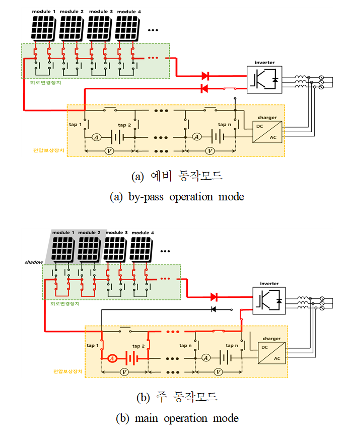 [Step 8] 식 (3)에서 $I_{str}(t)$가 0이 아니면, 회로변경 장치를 실행한다. 즉, MC를 통해 정상 모듈을 직렬로 연결하여 $I_{str}(t)$개의 새로운
