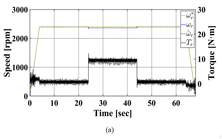 속도의 전반적인 추세를 효과적으로 반영하고 있음을 보였다. 또한, 가속/감속 구간 또는 부하 인가 시 등 동특성이 크게 변하는 상황에서도 실제 속도와