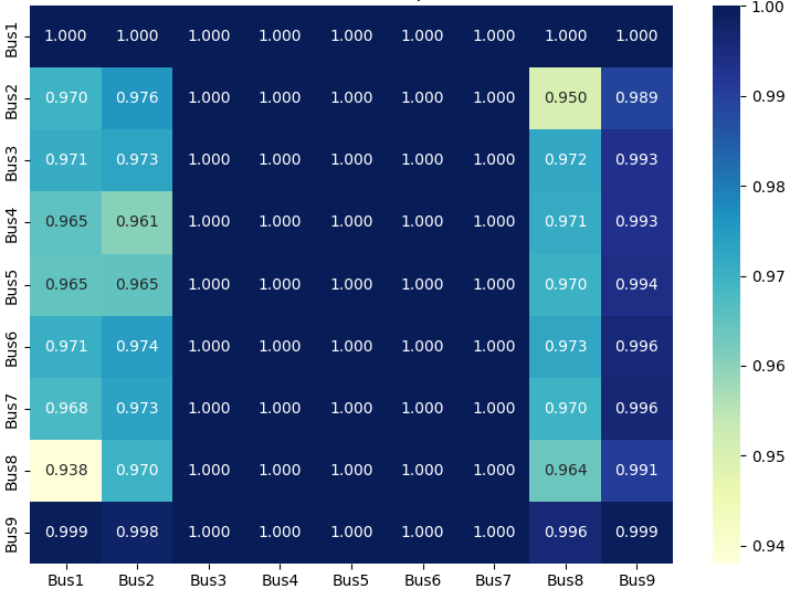 인프라 부족 및 복잡한 구조를 반영할 수 있는 일부 특성을 학습하고 계통 확장을 고려한 추가 모선에 따른 변화를 학습한다. 학습된 모델의 성능 평가를