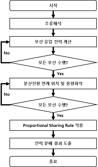 부하에 대한 분산전원별 기여도를 정량적으로 계산하고 최종 결과를 도출한다.