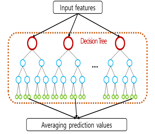 그림 3은 RF 모델의 학습 구조를 나타낸 것이다. RF 모델의 학습 구조는 다수의 기저 학습기(base learner)를 병렬로 구성하여 예측을 수행하고