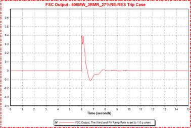 앞선 HVDC 고장에 대한 두 설비의 유효전력 출력은 FW-SC와 GFM의 유효전력 출력을 비교하면, GFM은 전력계통 내 순간적인 유효전력 응답이