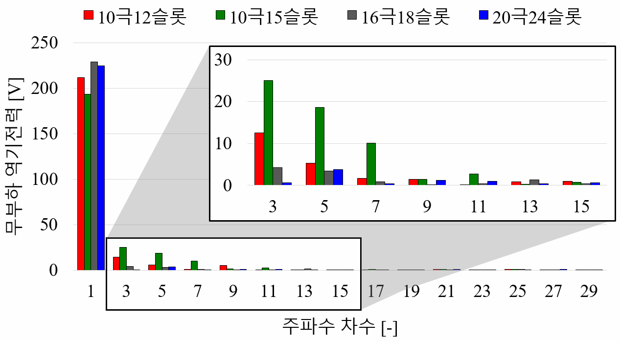 대비 모터의 주기가 작으므로 진동ㆍ소음에 취약할 수 있으며 회전자 자속보다 낮은 차수인 저조파(sub-harmonic)성분에 의해 추가적인 철손과