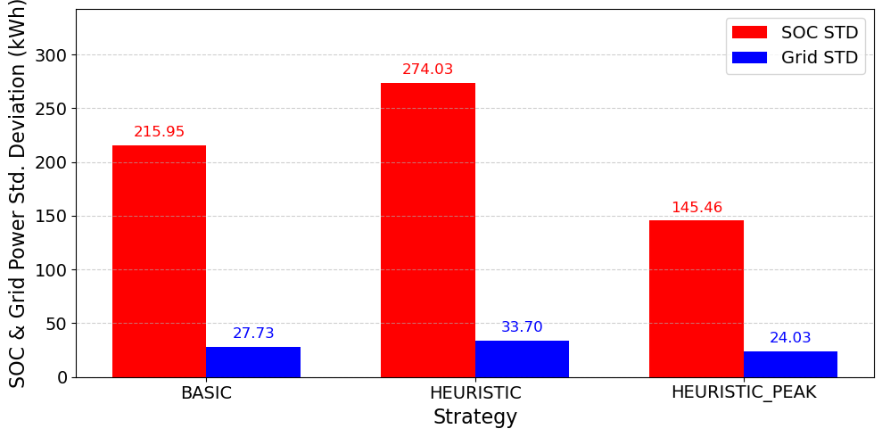 ๊ฒฐ๊ณผ๋ ์ ์ํ ํด๋ฆฌ์คํฑ+ํผํฌ ์ด์ฉ ์ ๋ต์ด UPS ์ฌ์ฉ๋ฅ , SOC ์์ ์ฑ, ์ ๋ ฅ ๋น์ฉ, ๊ณํต ์ ๋ ฅ ์ฌ์ฉ๋์ ๋ณ๋์ฑ ํญ๋ชฉ์์ ๊ฐ์ฅ ์ฐ์ํ ์๋๋ฆฌ์ค๋ก