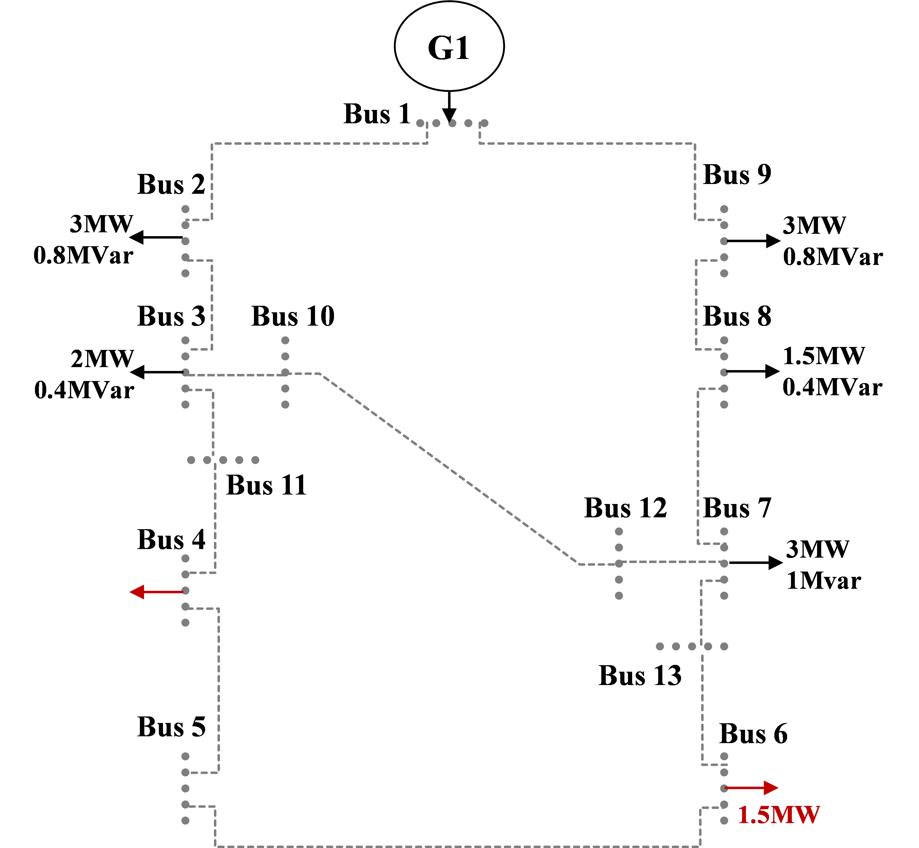 고장을 복구할 수 있으므로, 실질적으로 버스 (2~4)는 연계선로의 스위칭 시간동안만 고장을 경험할 것이다. 또한 고장 발생 시, 버스 4와 연결된