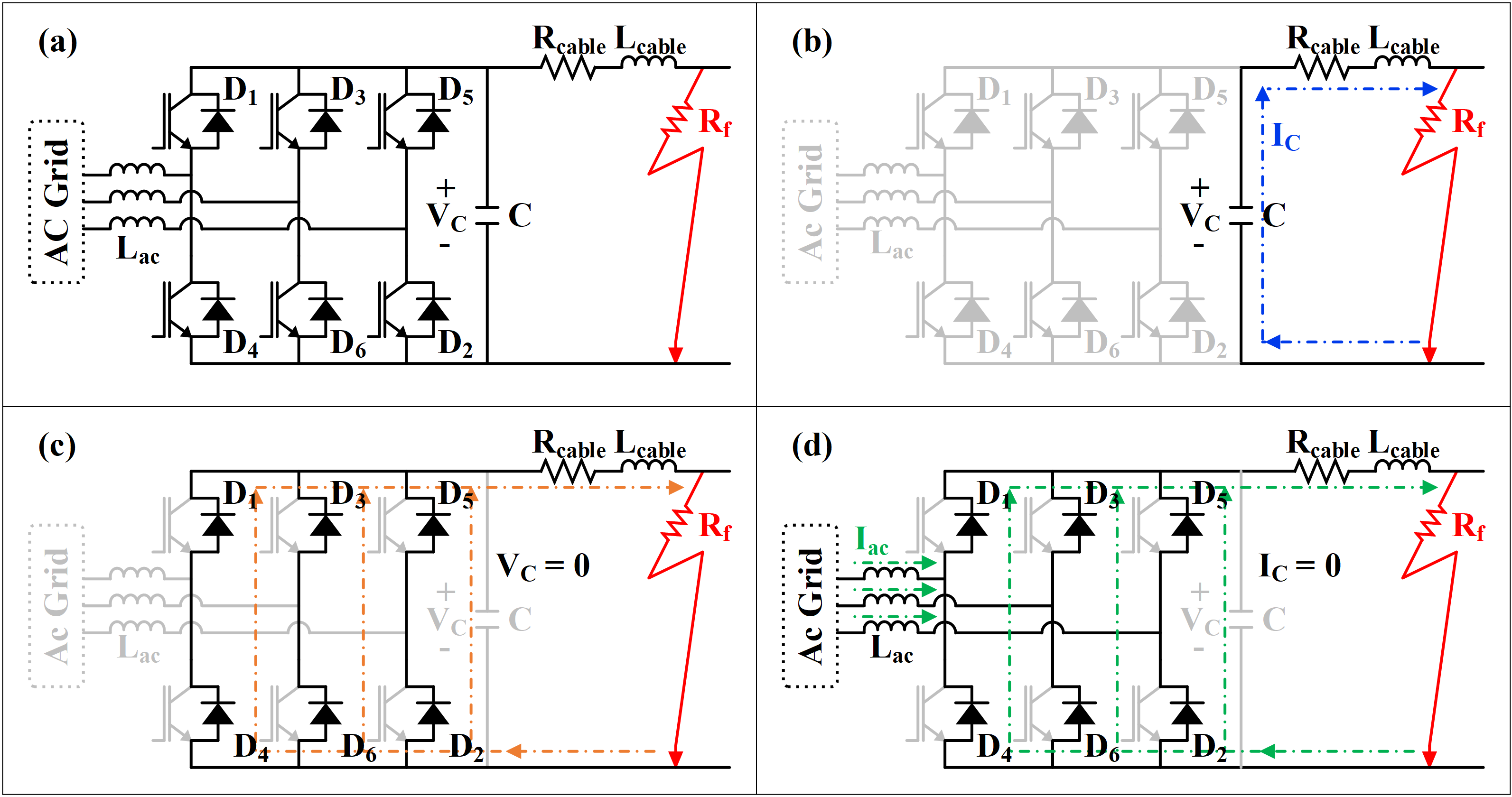 discharge (c) Stage 2 : Diode freewheeling (d) Stage 3 : AC grid feeding the fault