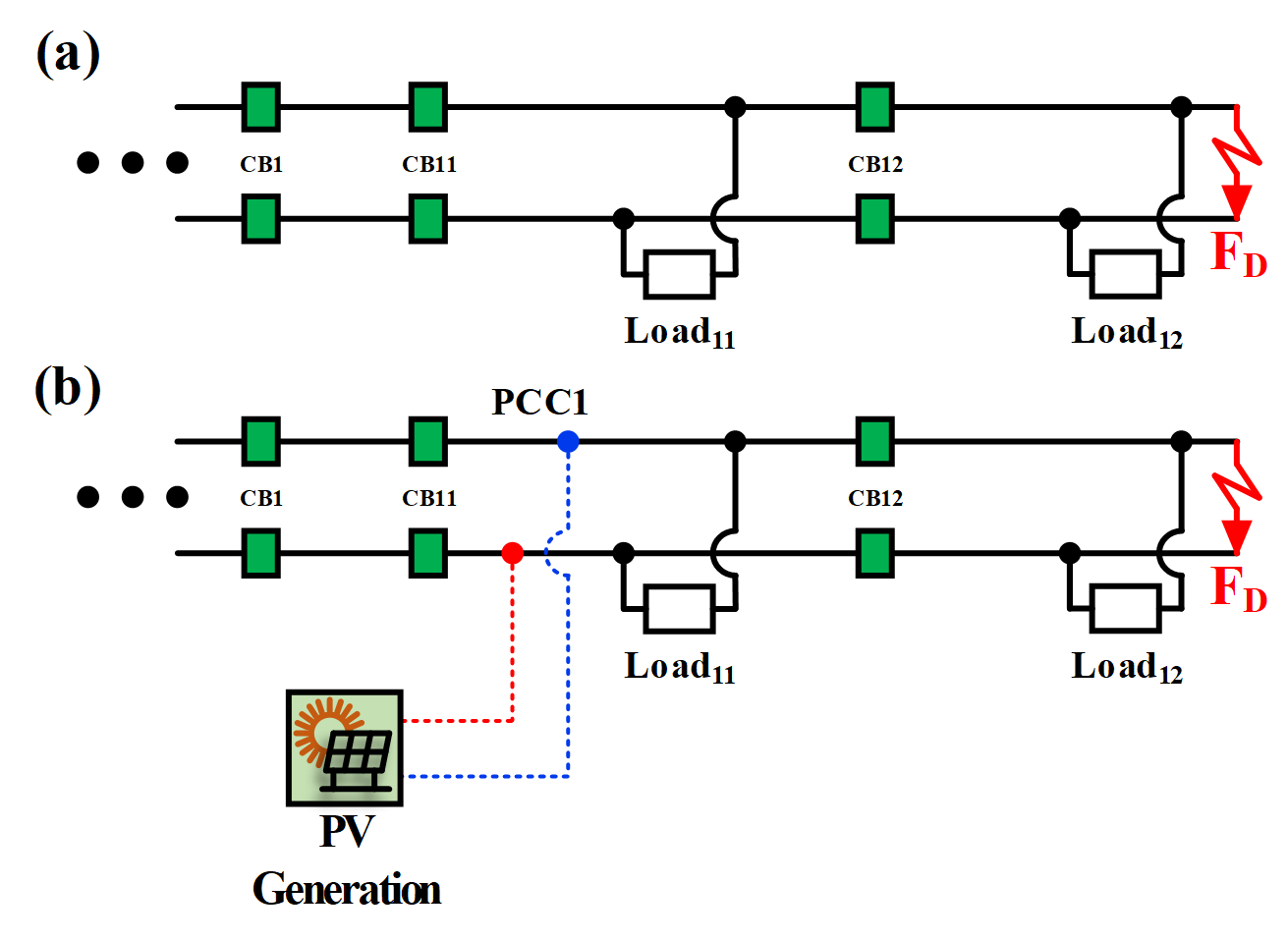 ์ ๋ก์ ์ค๊ฐ์์ ๊ณ ์ฅ์ด ๋ฐ์ํ FC ๋๋ FF ๊ณ ์ฅ์์๋ CB11 ๋๋ CB21์ด ์ฒซ ๋ฒ์งธ๋ก ๋์ํ๋ค. CB11 ๋๋ CB21์์ ๋ณดํธ ์คํจ ์ CB11