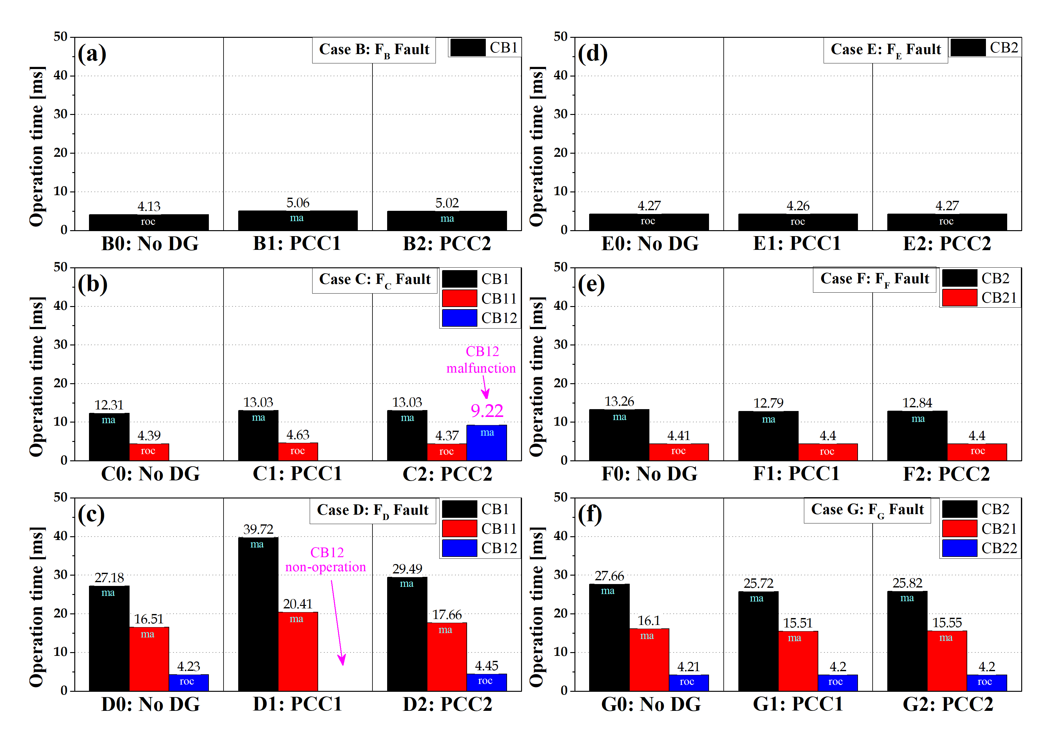 Table 5. CB operating time difference in Case E, F, G