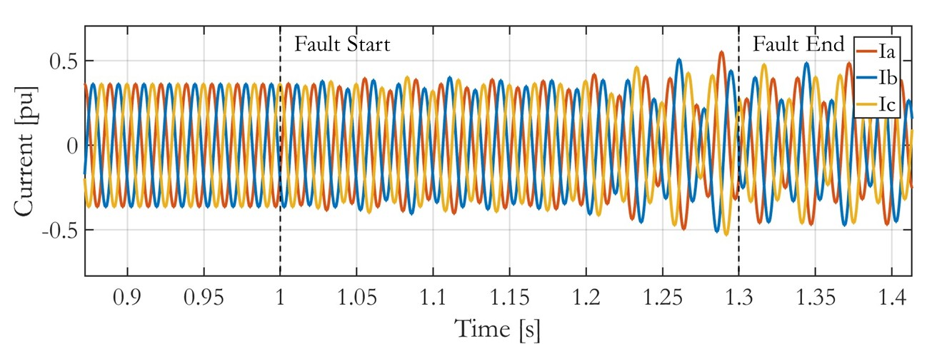 $i_{i,\: s}(t)$๋ฅผ ๊ธฐ๋ฐ์ผ๋ก ๊ณ์ฐํ๋ค. ๊ณ ์ฅ ๋ฐ์ ์์ ์ $t_{1}$๋ผ๊ณ ํ ๋, ๊ณ ์ฅ ์ด์ ์ ์ค ์ ์์ํ ๊ตฌ๊ฐ์ $\left[t_{0},\: