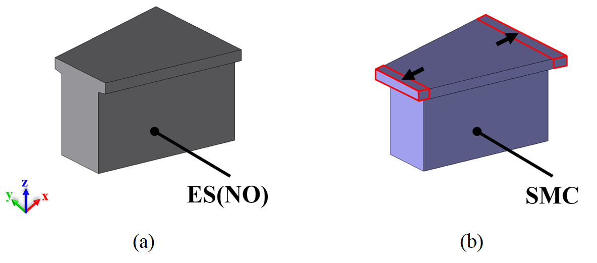 그림 2. 전기강판 및 SMC 모델 고정자 치 형상 (a) 전기강판 모델. (b) SMC 모델.