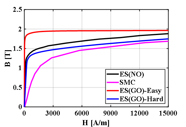 SMC는 전기강판에 비해 낮은 자기 포화 밀도 및 높은 철손 특성을 갖지만, 등방성 특성의 분말형 재료로 적층 구조가 필요하지 않아 전기강판에 비해