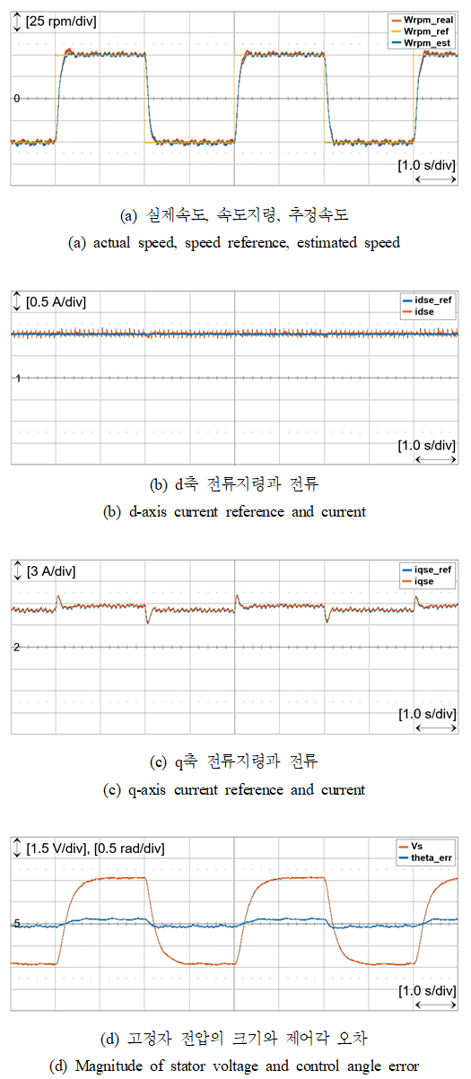 9(d)의 경우는 전류지령의 변경없이 전류지령이 MTPA 곡선을 따라 움직인다는 것을 알 수 있다.