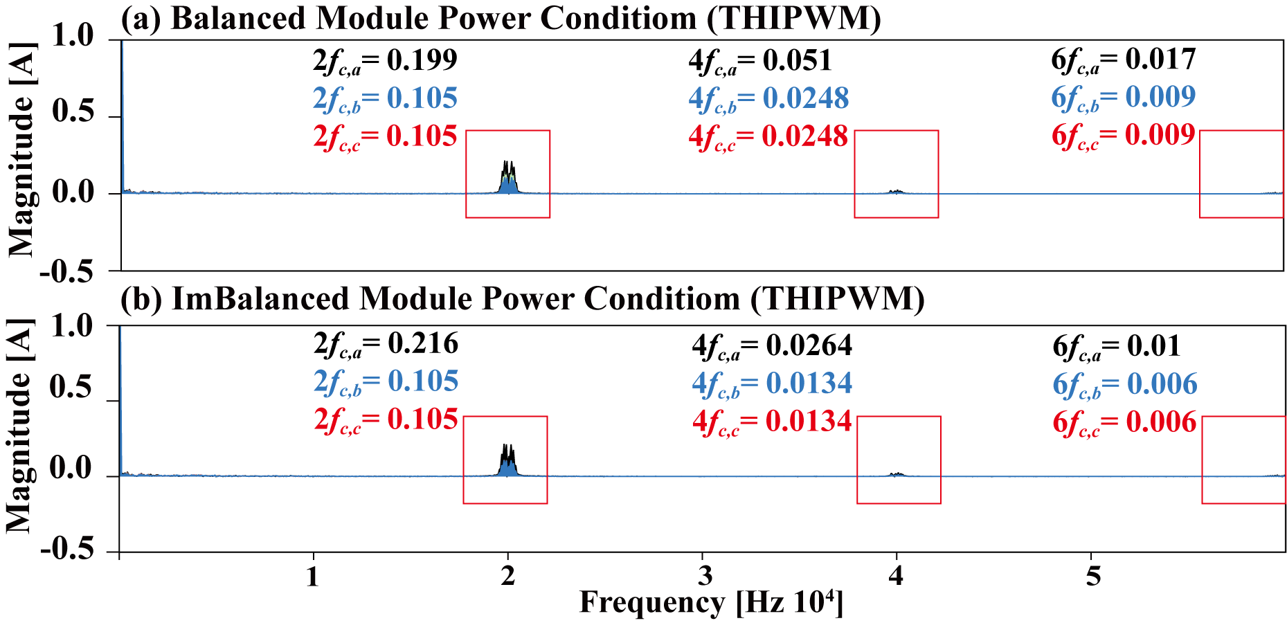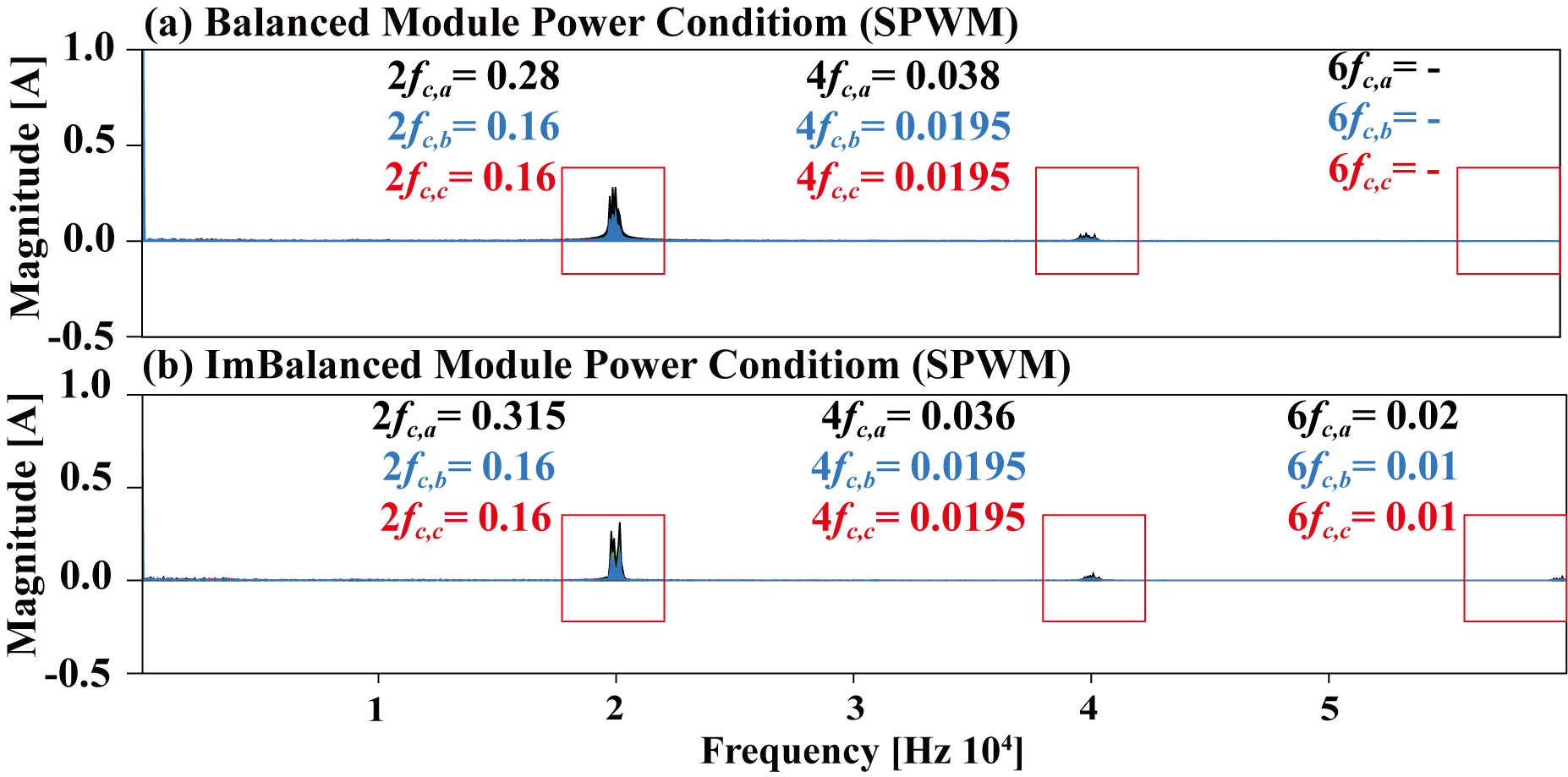 Fig. 6. Frequency spectrum of the output current under SPWM: (a) power balance among