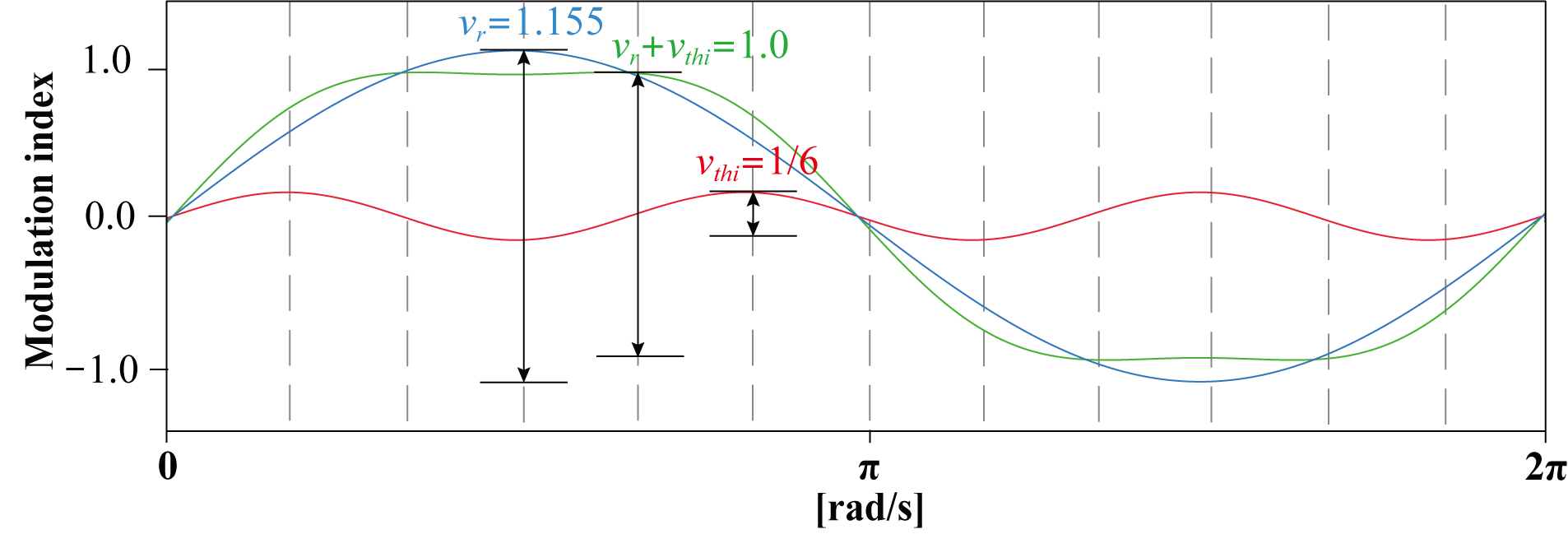 ๋ฐฉ์(Third Harmonic Injection PWM, THIPWM), ๊ทธ๋ฆฌ๊ณ ๋ถ์ฐ์ ๋ณ์กฐ ๊ธฐ๋ฒ(Discontinuous PWM, DPWM)์