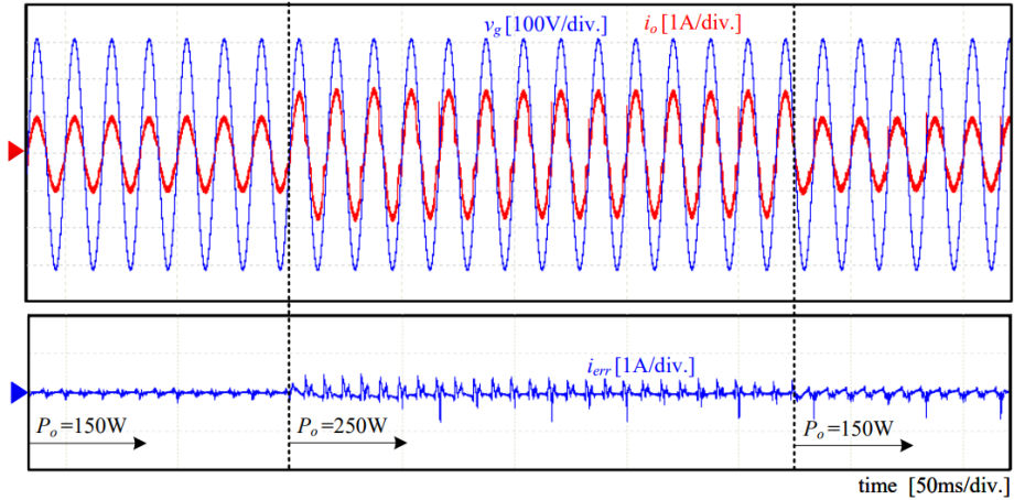제안 인버터의 제어 시스템은 출력 전류가 계통 전압과 같은 위상을 가지는 정형파형을 유지하고 목표 전력을 출력하도록 진폭이 조정되도록 제어하는 것이다.
