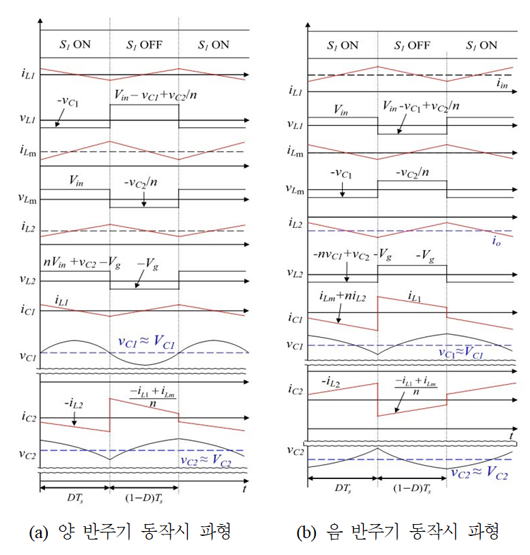 마찬가지로 제안 인버터의 출력전압이 음 반주기 구간인 경우(vg < 0), 이전 양 반주기 구간일 때와 동일한 과정으로 기준 듀티비를 도출할 수 있으며,