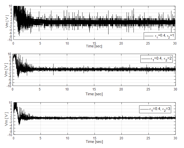 Fig. 14, Fig. 15์ Table 2, Table 3๋ฅผ ํตํด ์ถ๊ฐ ์ด๋์์($\epsilon_{1}=$$0.4$, $\epsilon_{2}=$$2$)๋ฅผ ์ฌ์ฉํ ์ด์ค $\epsilon$-PID/PD์ ์ด๊ธฐ๊ฐ