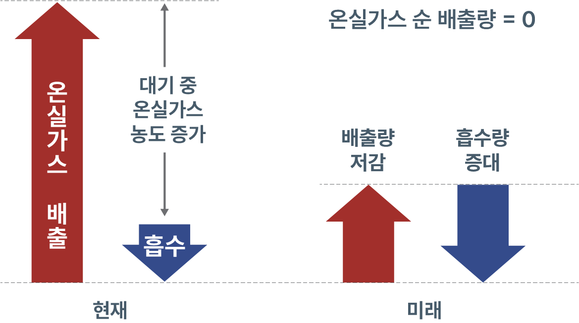 : Carbon Capture, Utilization and Storage(이산화탄소 포집·활용·저장))로 상쇄하여 순배출을 0으로 만드는 개념이다.