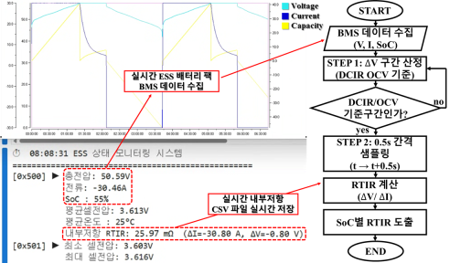 그림 4는 본 논문에서 제안하는 ESS 배터리 팩 단위 실시간 내부저항을 산출하는 모니터링 S/W와 알고리즘 방식을 보여준다.