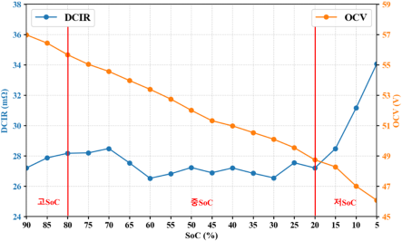DCIR은 충·방전 과정에서의 동적 응답 특성을 반영하는 핵심 파라미터이며, 배터리의 전기적 상태를 평가하는 중요한 지표로 활용된다. 또한, 측정된