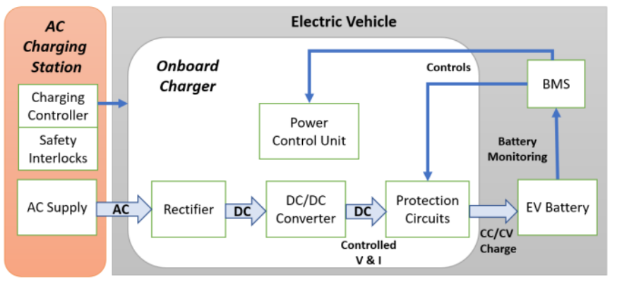 코드 (Grid Code)가 필요하다. 또한 온보드 및 오프보드 충전기, AC-DC 및 DC-DC 컨버터 구성, AC 및 DC 기반 충전소 아키텍처