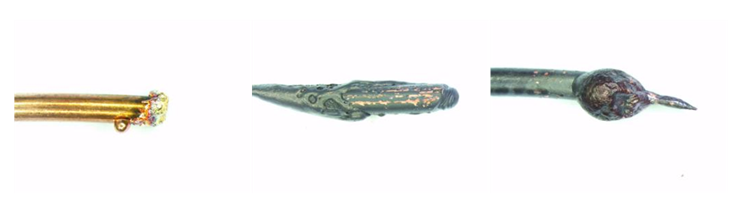 melting morphologies: (1) melting due to short circuit(2) melting caused by fire-induced