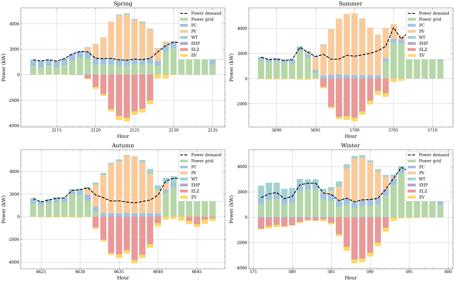 실시간 부하 추종 운전을 통해 공급 전력과 수요 전력의 균형을 유지한다. 그러나 PV와 WT는 기상 조건에 의존하는 특성상 일사량 및 풍속의 시간적