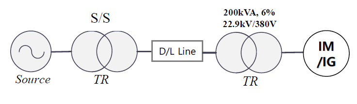 그림 1은 본 연구에서 제안하는 유도기 기반 전동/발전(IM/IG)시스템의 구성도를 나타낸 것이다. 여기서, 유도기는 변전소에서 배전 선로를 거쳐 구내에