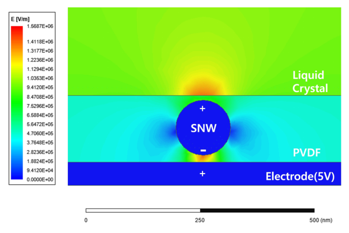 그림 7. SNW-PVDF TN셀에 5V 전압을 인가한 상태의 FEM 시뮬레이션