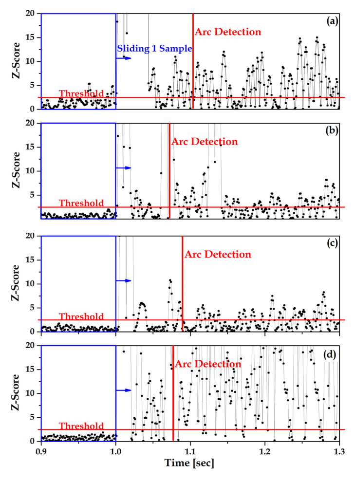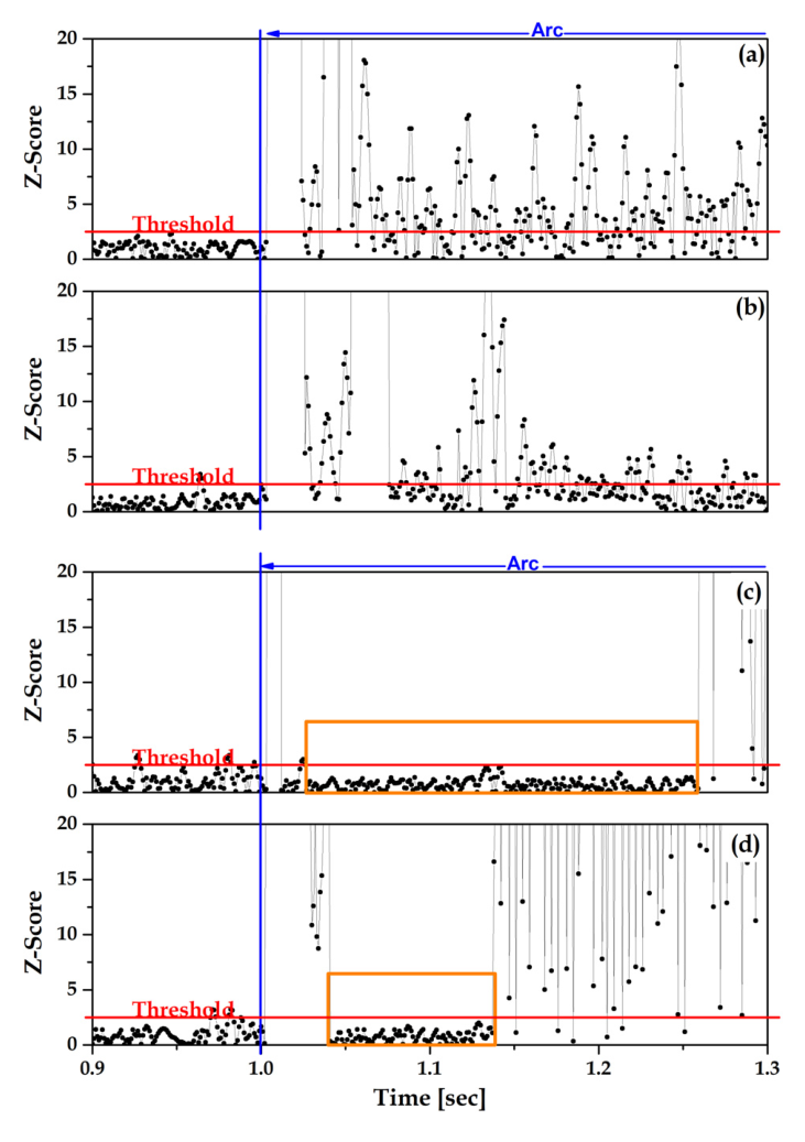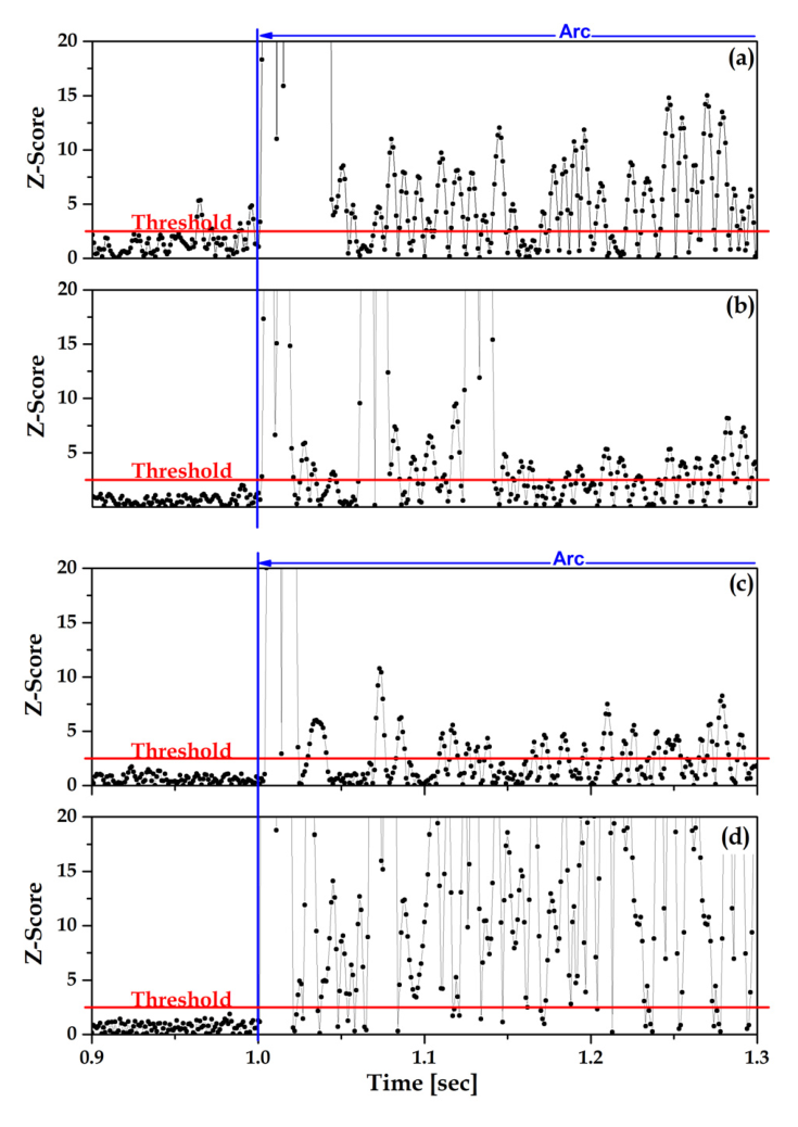 이후 식 (10)에서와 같이 Z-Score를 적용하여 정규화를 수행하였으며, 이를 통해 부하와 무관하게 아크 발생 여부를 감지할 수 있는 지표를 도출하였다. 이때