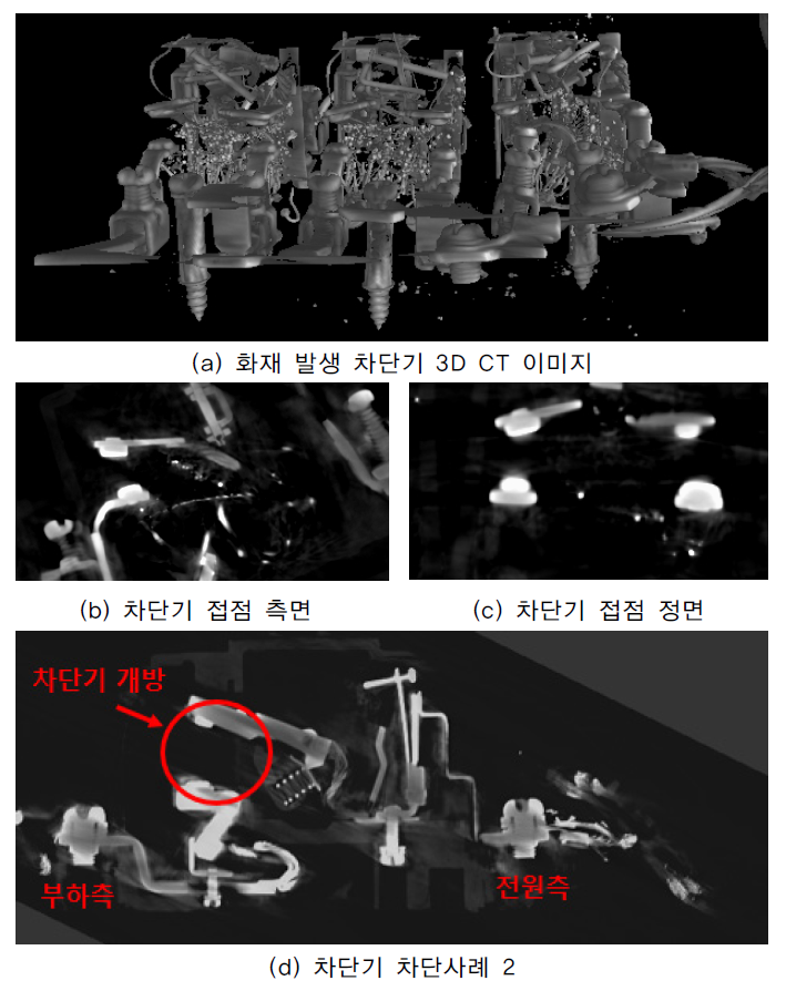 PCB의 소손여부, 차단기의 트립여부 및 퓨즈의 용융여부를 X-ray를 통해 시각화함으로써, 화재 원인이 된 소자를 특정할 수 있으며 이를 회로도와