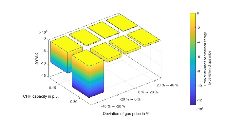 Fig. 11. The ratio of the energy deviation by CHP to the gas price deviation.