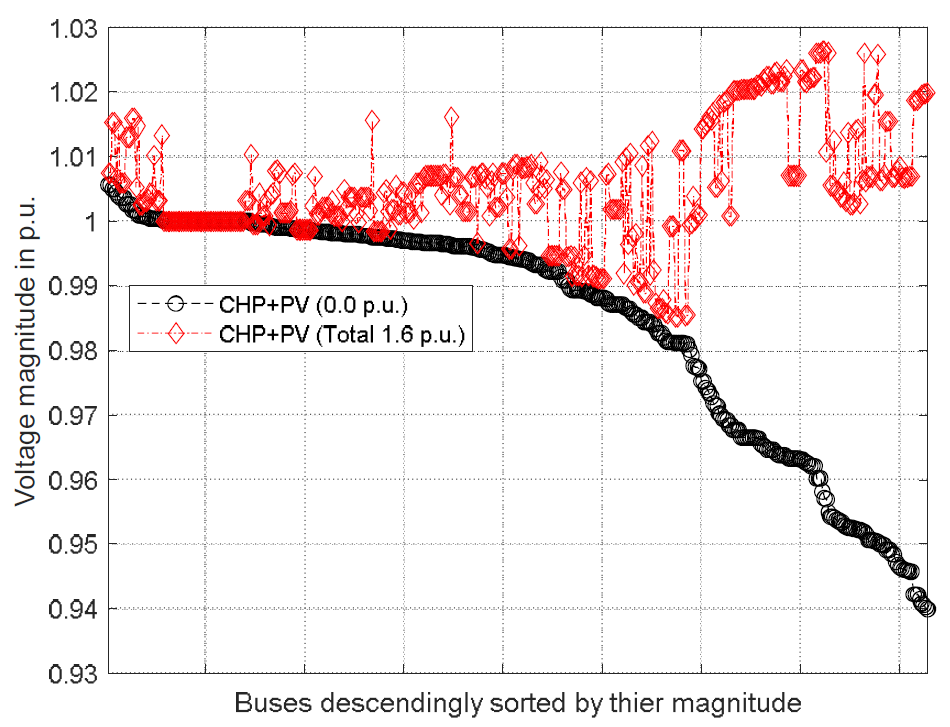 p.u.์์ ยฑ5% ๋ฒ์๋ก ๊ฐ์ ๋๋ ๊ฒฐ๊ณผ๋ฅผ ํ์ธํ์๋ค. ์ด๋ ANSI C84.1 ๋ฒ์ A์ ๊ถ์ฅ ๊ธฐ์ค์ ๋ง์กฑํ๋ฉฐ, ๋ณตํฉ ๋ฐ์ ์ด ์ ์ ์์ ํ์ ๊ธฐ์ฌํจ์