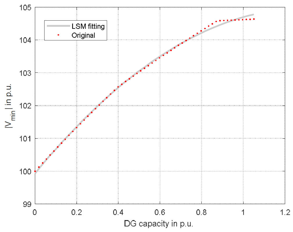 ํน์ ์ฉ๋์ ๋ถ์ฐ์ ์์ด ์ค์น๋๋ฉด, ์์ ๊ณผ ๊ฐ์ด ์ ์ ํฌ๊ธฐ์ ๊ธฐ์ค๊ฐ(์: 1.0 p.u.)์ผ๋ก๋ถํฐ์ ๋ณํ๋ฅผ ์์นํํ ์ ์๋ค. ์ด๋ ๋ชจ๋ ๋ชจ์ ์ ์ ์