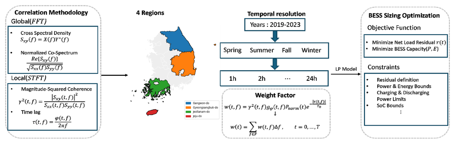 본 장에서는 2장에서 분석한 주파수 영역 상관관계 개념을 시간에 따라 변하는 동적 프레임워크로 확장하고, 이를 BESS 최적 용량 산정 모델에 통합하는