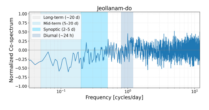 기반 Normalized Co-Spectrum 분석으로 각 지역별·계절별로 어떤 주기 대역에서 동상 또는 상호 보완이 지배적인지 파악하고, BESS가