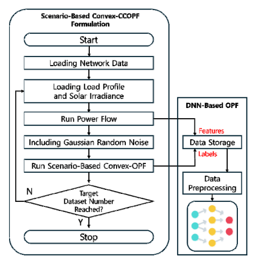따라서 본 연구에서는 시나리오 기반 Convex-CCOPF로부터 도출된 최적 전압제어 해를 학습 데이터로 활용하여, 제한적인 계측 정보만으로도 반복적인