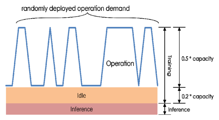 데이터센터의 부하는 추론(inference) 및 대기(idle) 부하가 상시 존재하고, 학습(training) 수행 여부에 따라 총 부하가 시간대