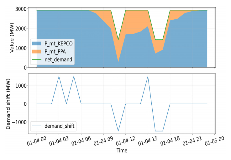직접전력구매, 에너지저장장치, 수요 이동 등을 동시에 고려하는 최적화 기반 접근을 적용하였다. 이를 통해 주어진 제약조건 하에서 비용이 최소화되는