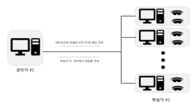고려하여 시스템 구조를 설계하였다. UDP 기반 경량 제어 구조와 중앙 관리형 콘텐츠 배포 모델을 적용함으로써, 다수 학습자를 동시에 제어할 수 있는