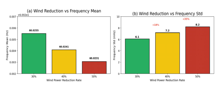 Fig. 7. Frequency Variation by Wind Reduction: (a) Mean, (b) Std (Standard Deviation)