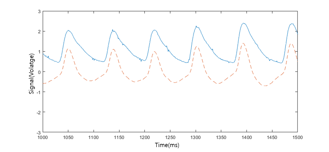 그림. 14. Raw VPG Data(파랑)와 Smooth VPG Data(빨강)