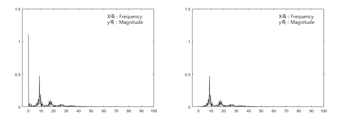 그림. 12. Raw Data(좌)와 IIR Data(우)의 FFT 그래프